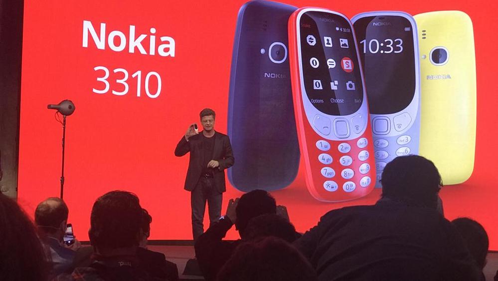 Ecco una immagine che immortala il vecchio Nokia 3310 in mezzo ai nuovi Nokia 3310 (Come si può notare il design e le forme sono molto simili)