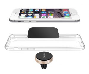Il supporto cellulare creato da Inateck ha un look elegante ed è davvero poco visibile in macchina quando il telefono non è collegato. Si tratta in pratica di un magnete che si collega alla presa d’aria della tua auto (molto simile a un deodorante per ambienti che va inserito nelle feritoie).