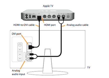 Assicurati che l’Apple TV sia collegato correttamente al televisore (vedi immagine seguente per i dettagli) e che sia sotto la stessa rete Wifi del PC.